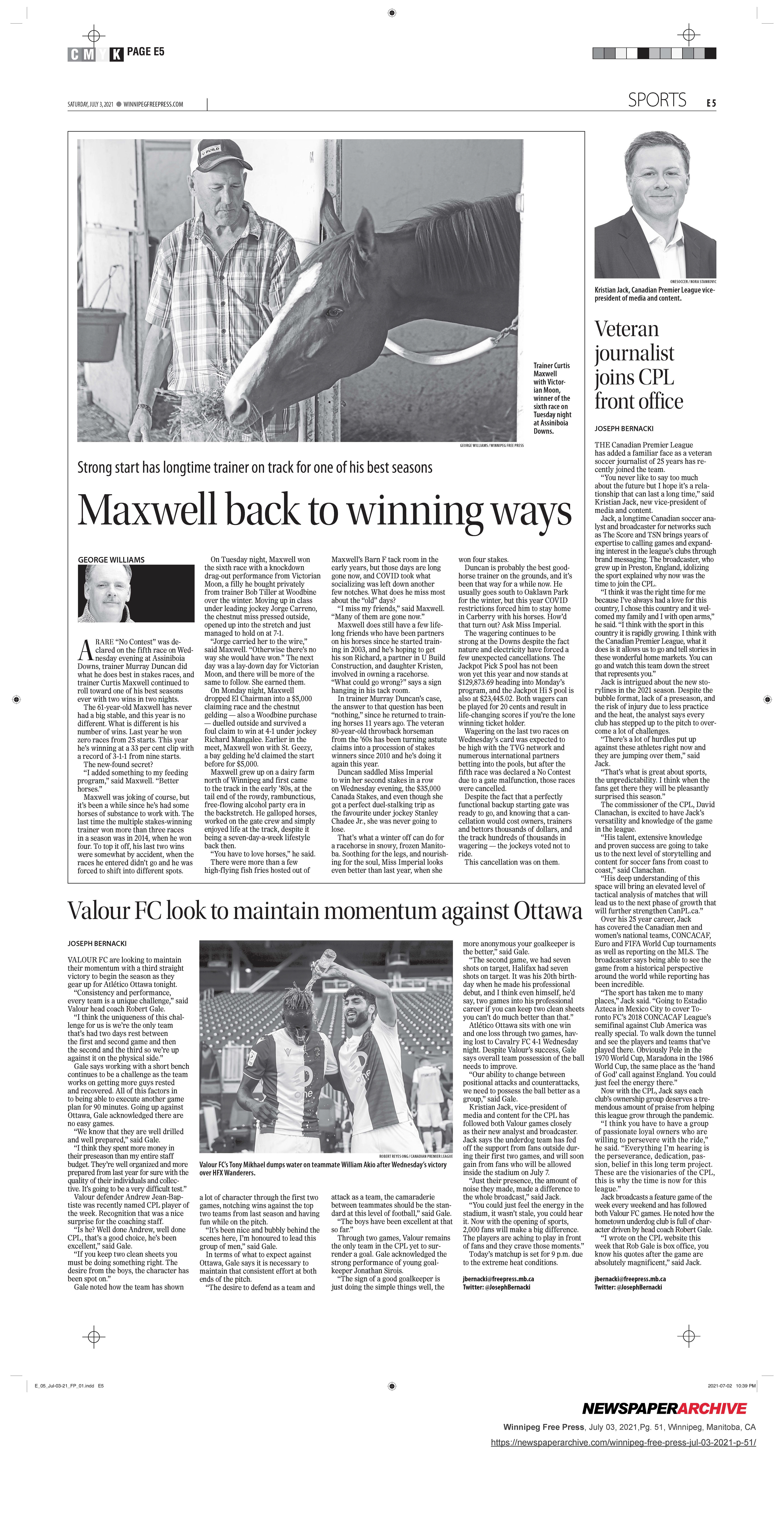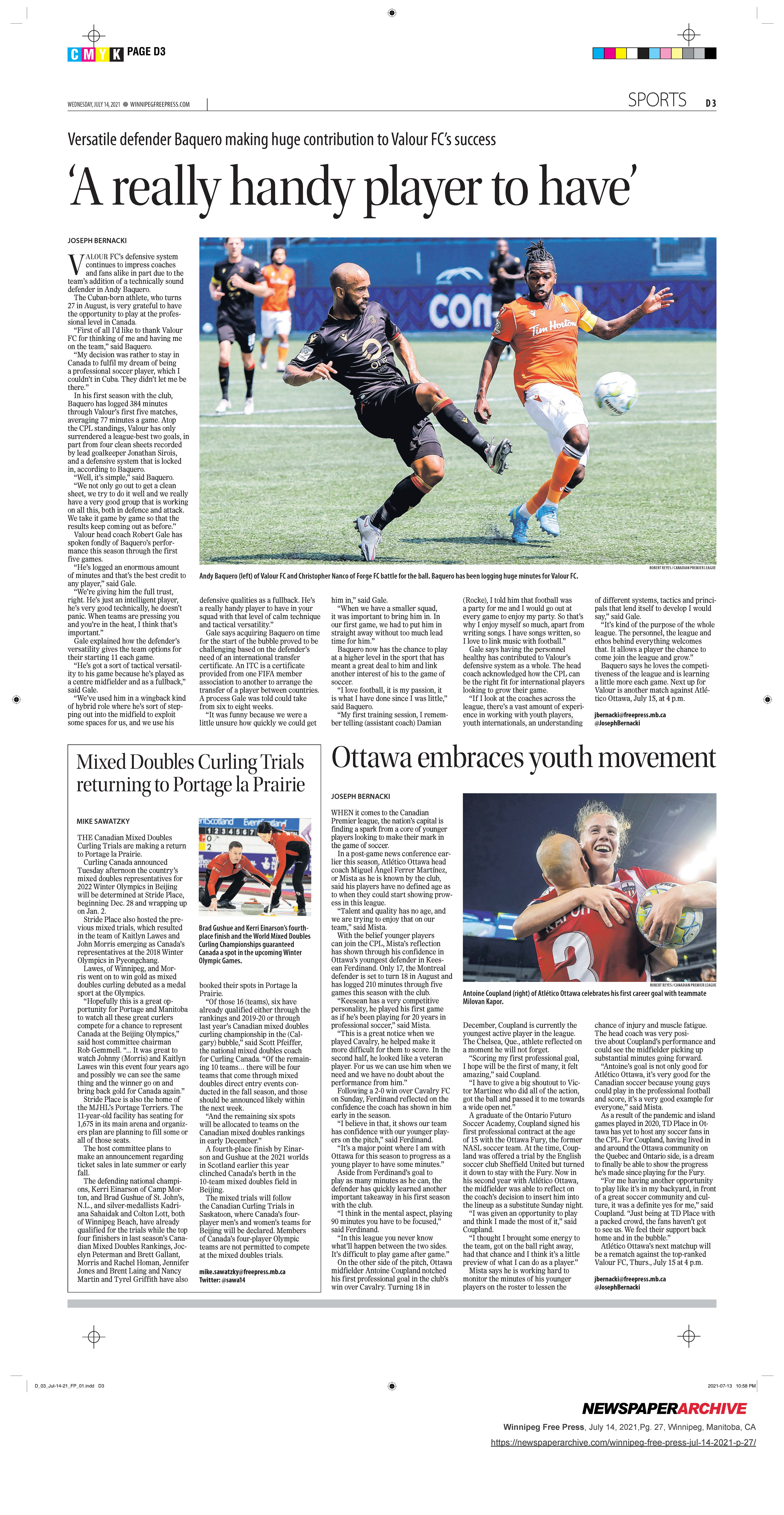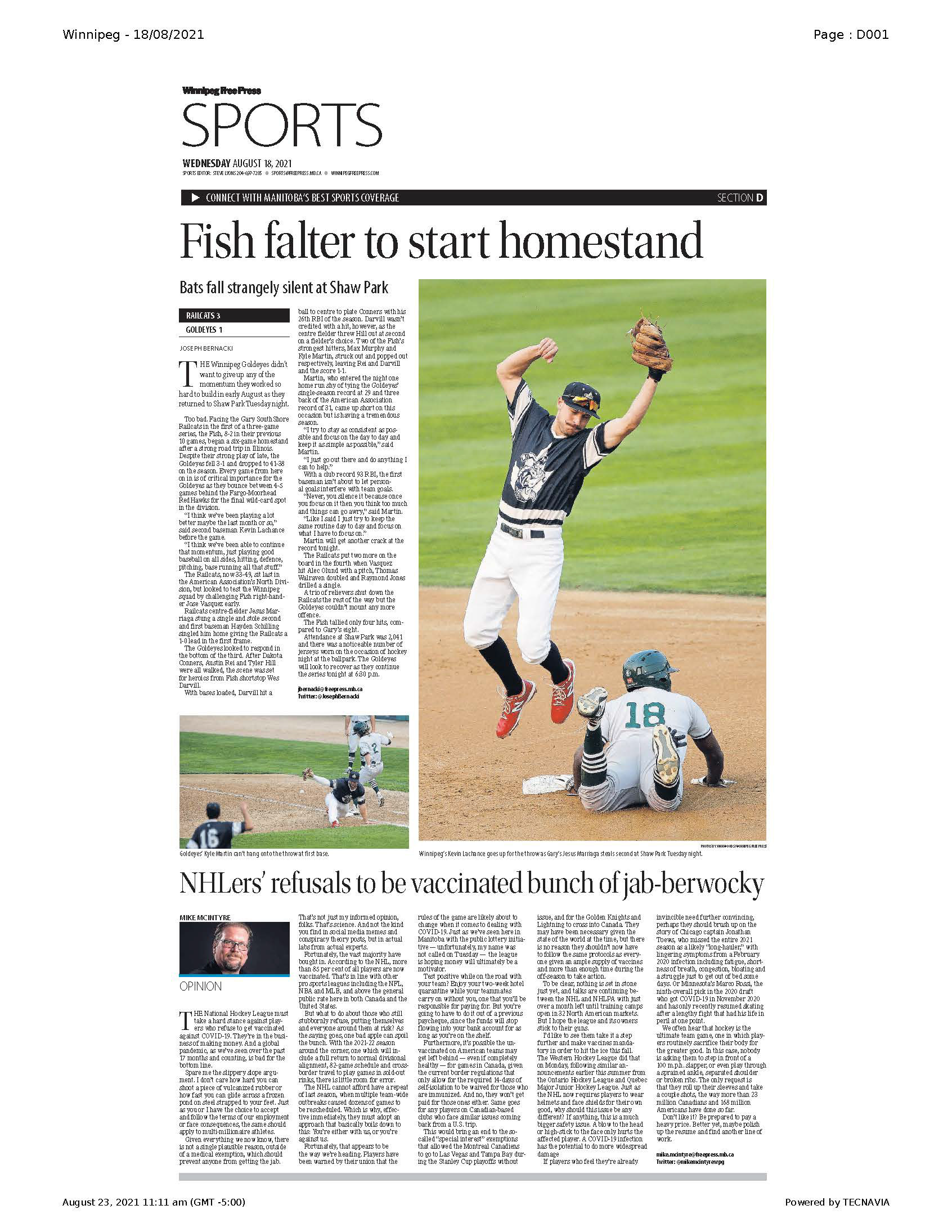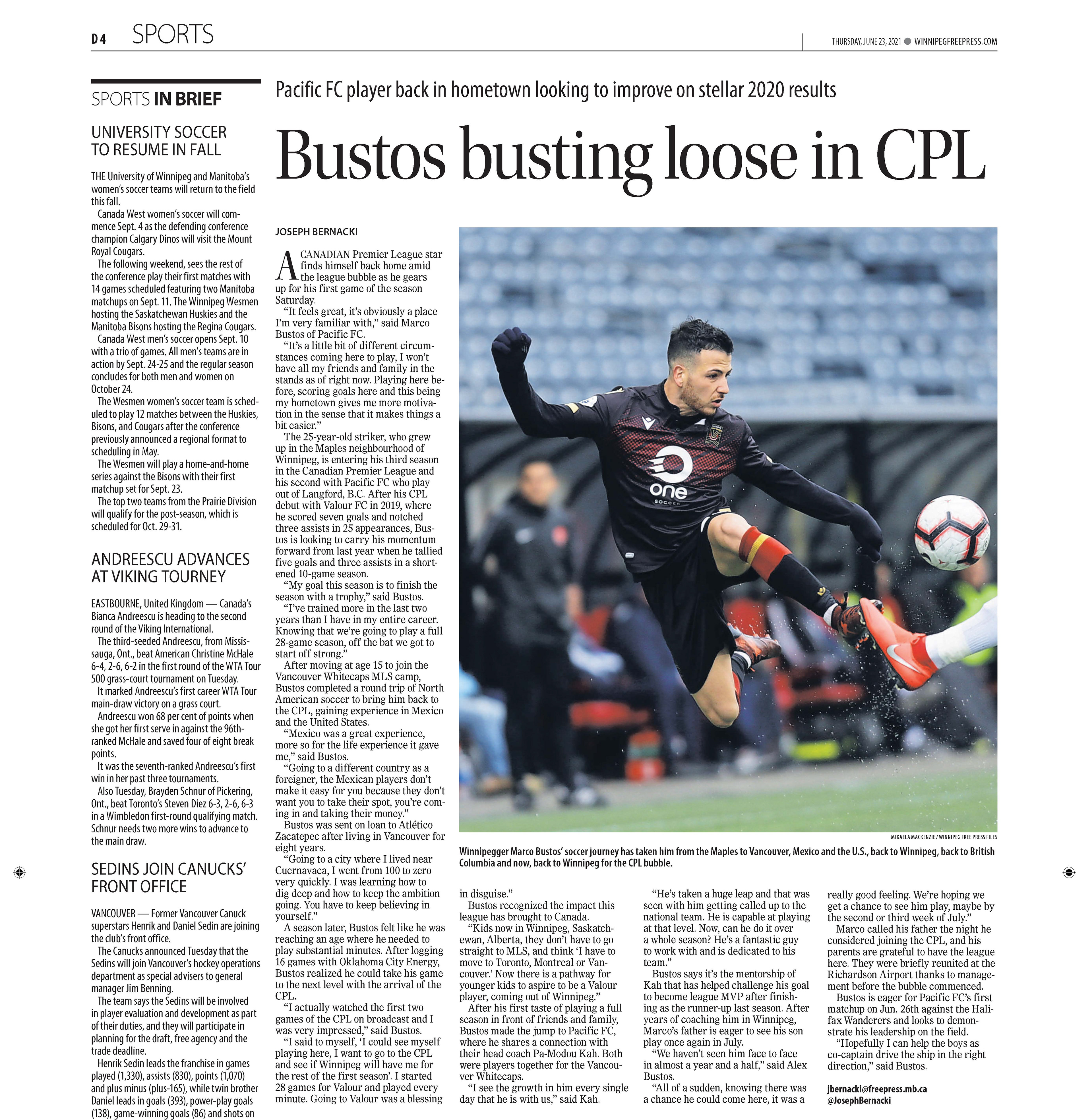 A collection of work published during my time as the 2021 Vince Leah Sports Intern at the Winnipeg Free Press from May 31, 2021 to August 26, 2021.