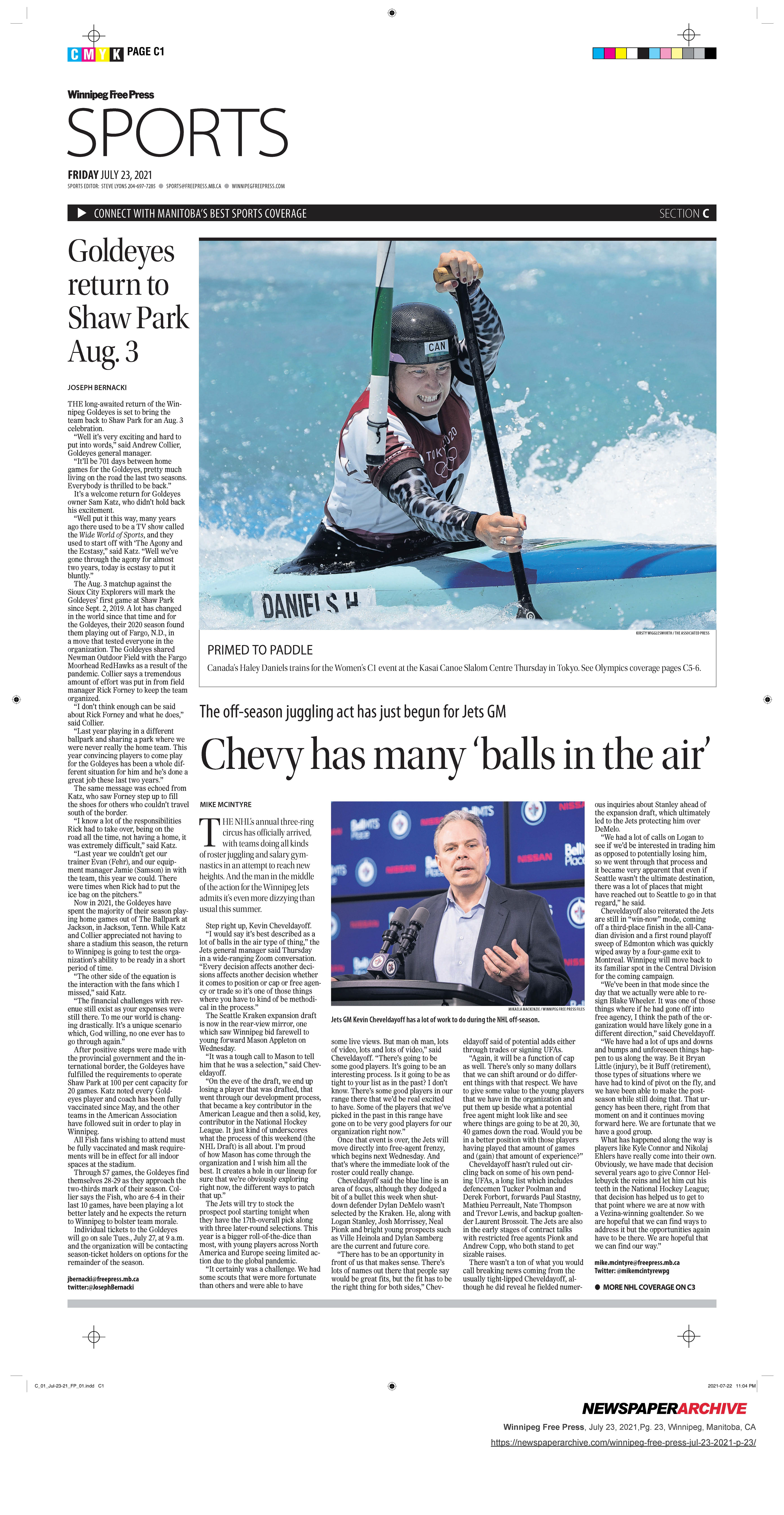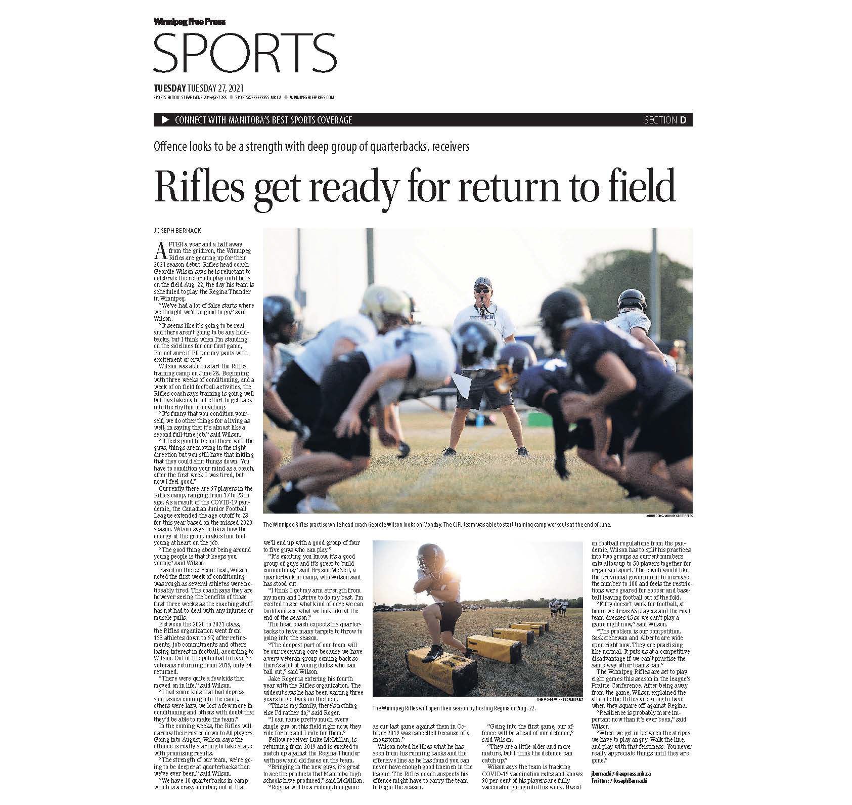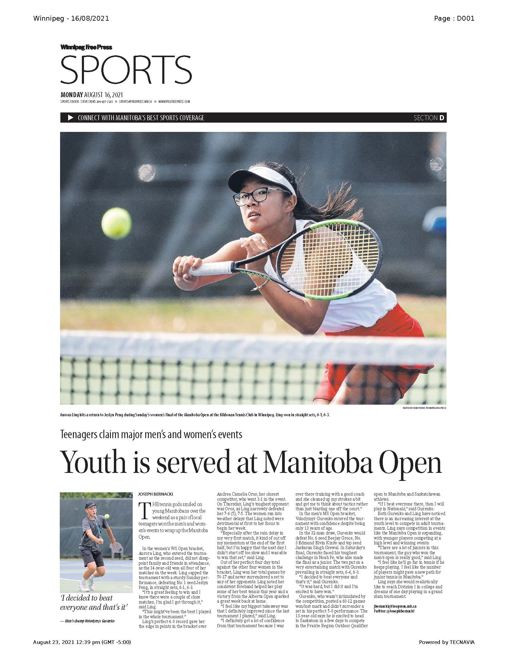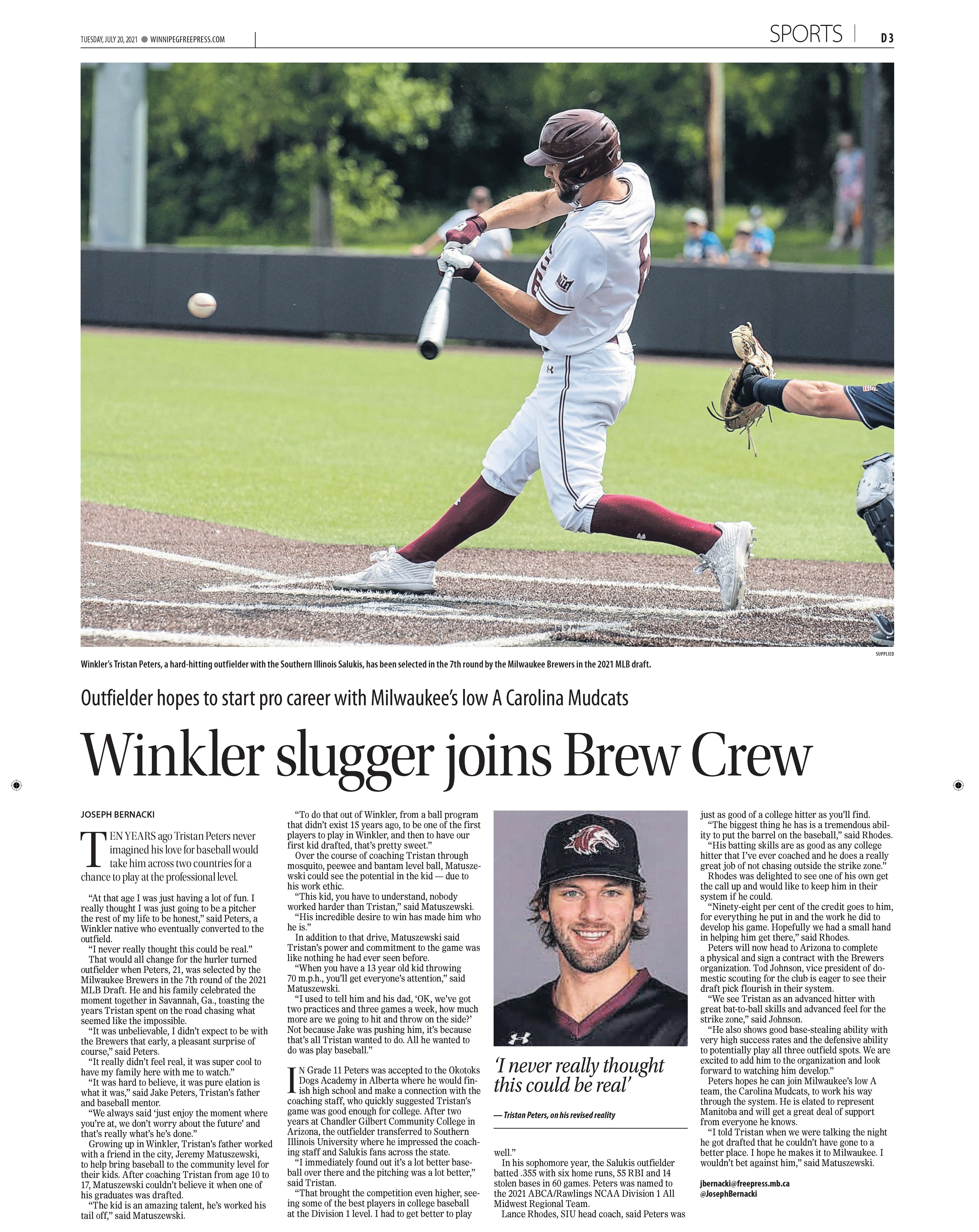 A collection of work published during my time as the 2021 Vince Leah Sports Intern at the Winnipeg Free Press from May 31, 2021 to August 26, 2021.
