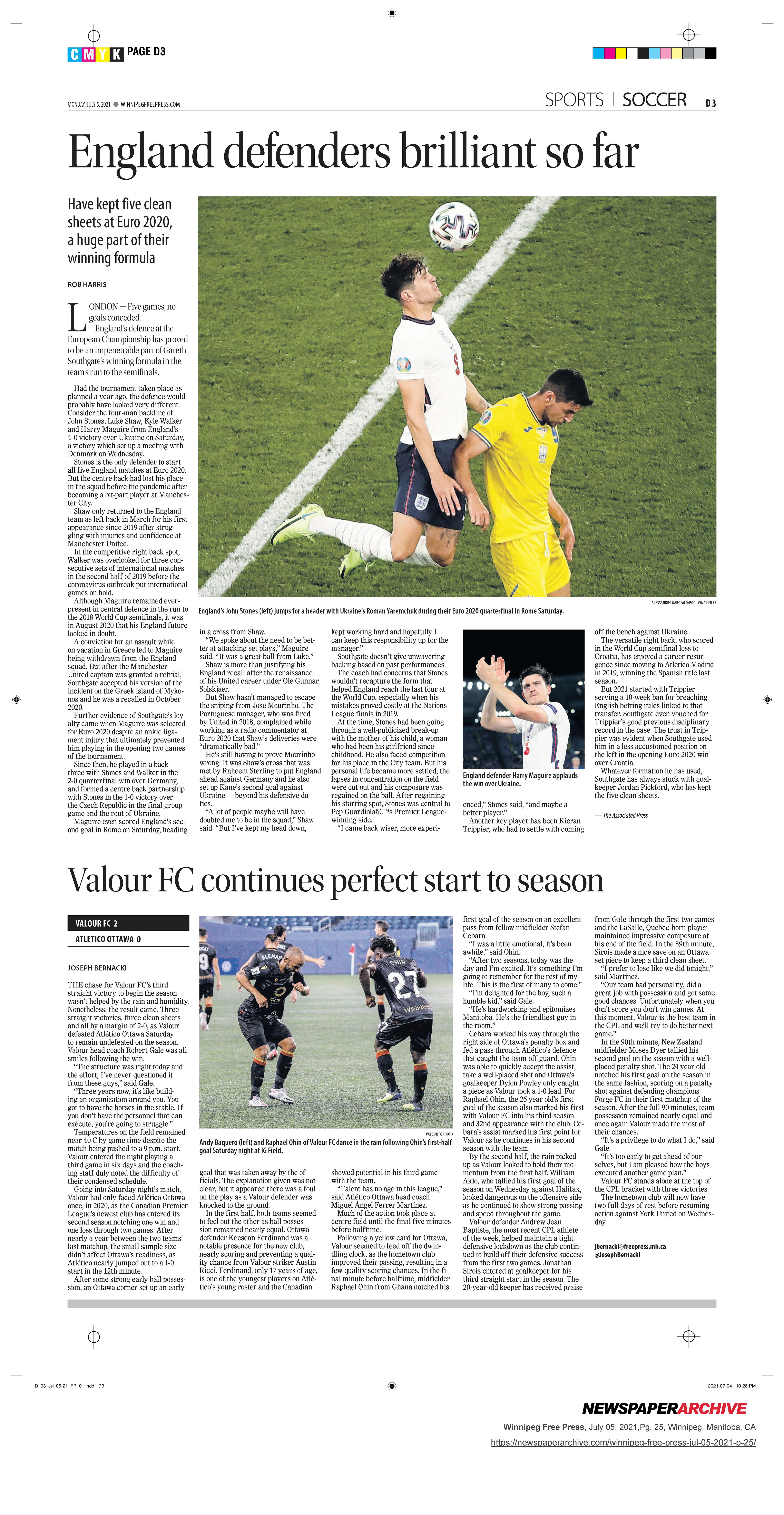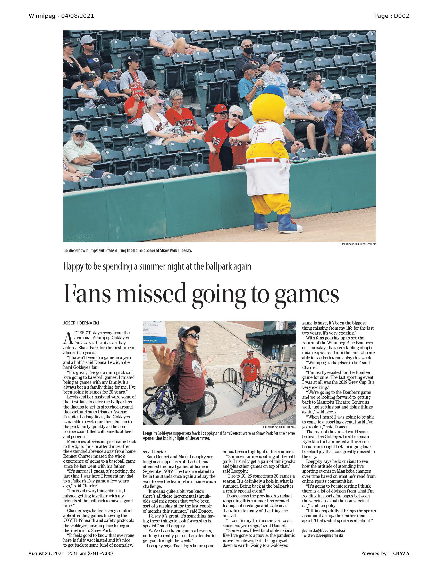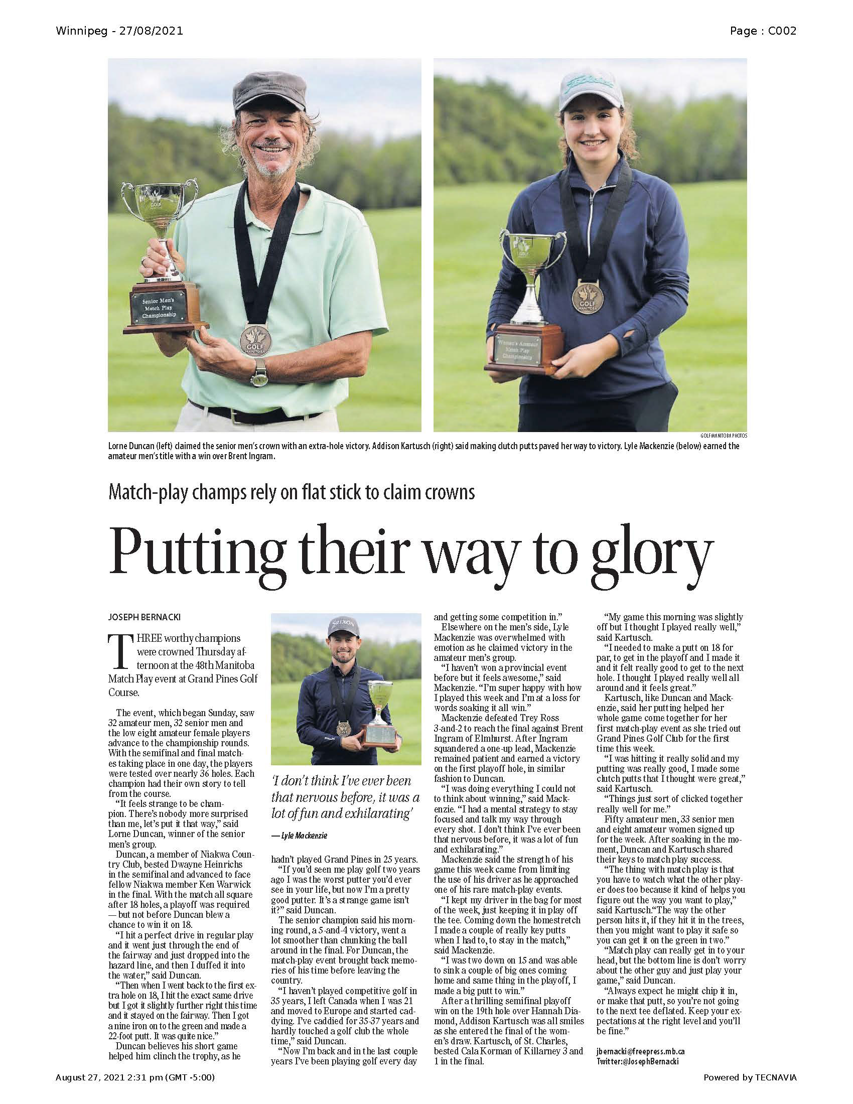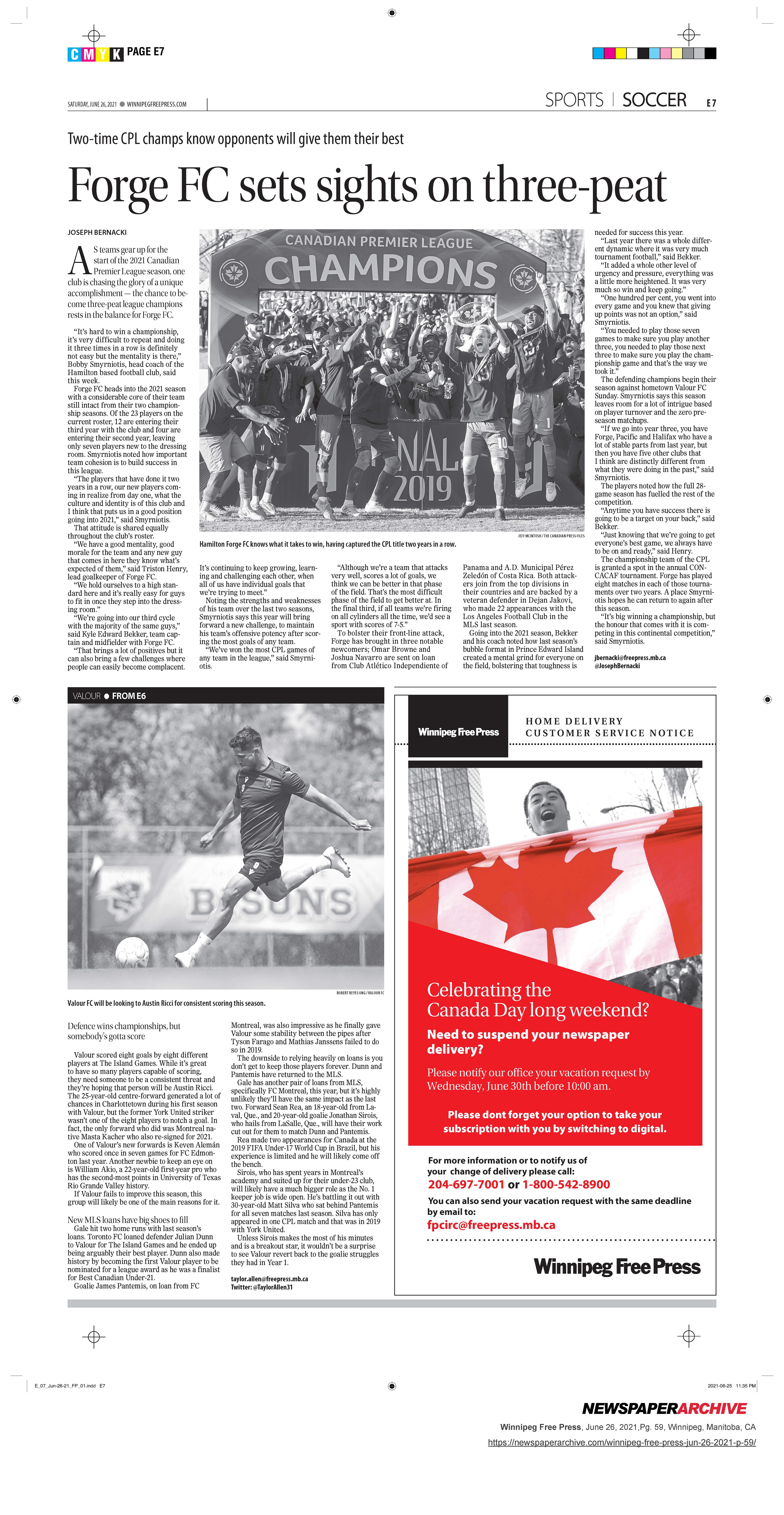 A collection of work published during my time as the 2021 Vince Leah Sports Intern at the Winnipeg Free Press from May 31, 2021 to August 26, 2021.