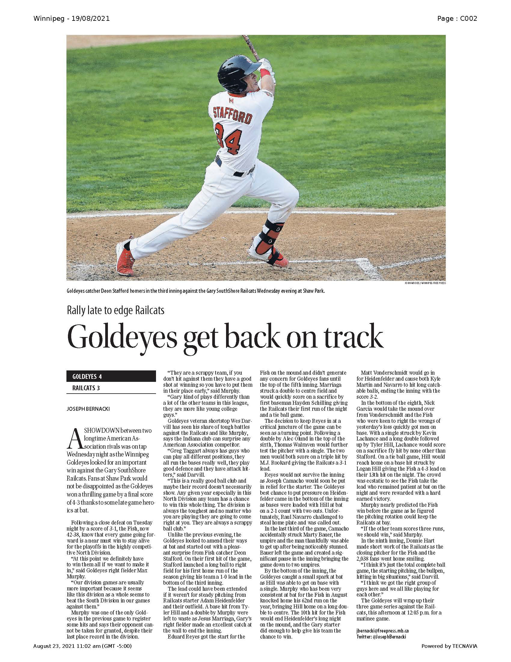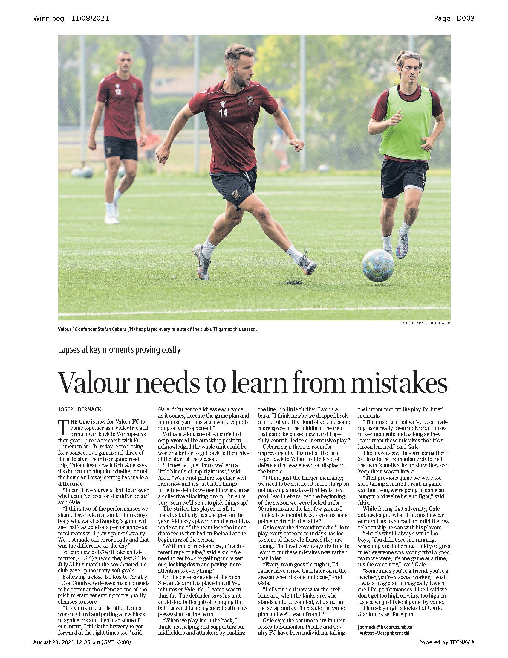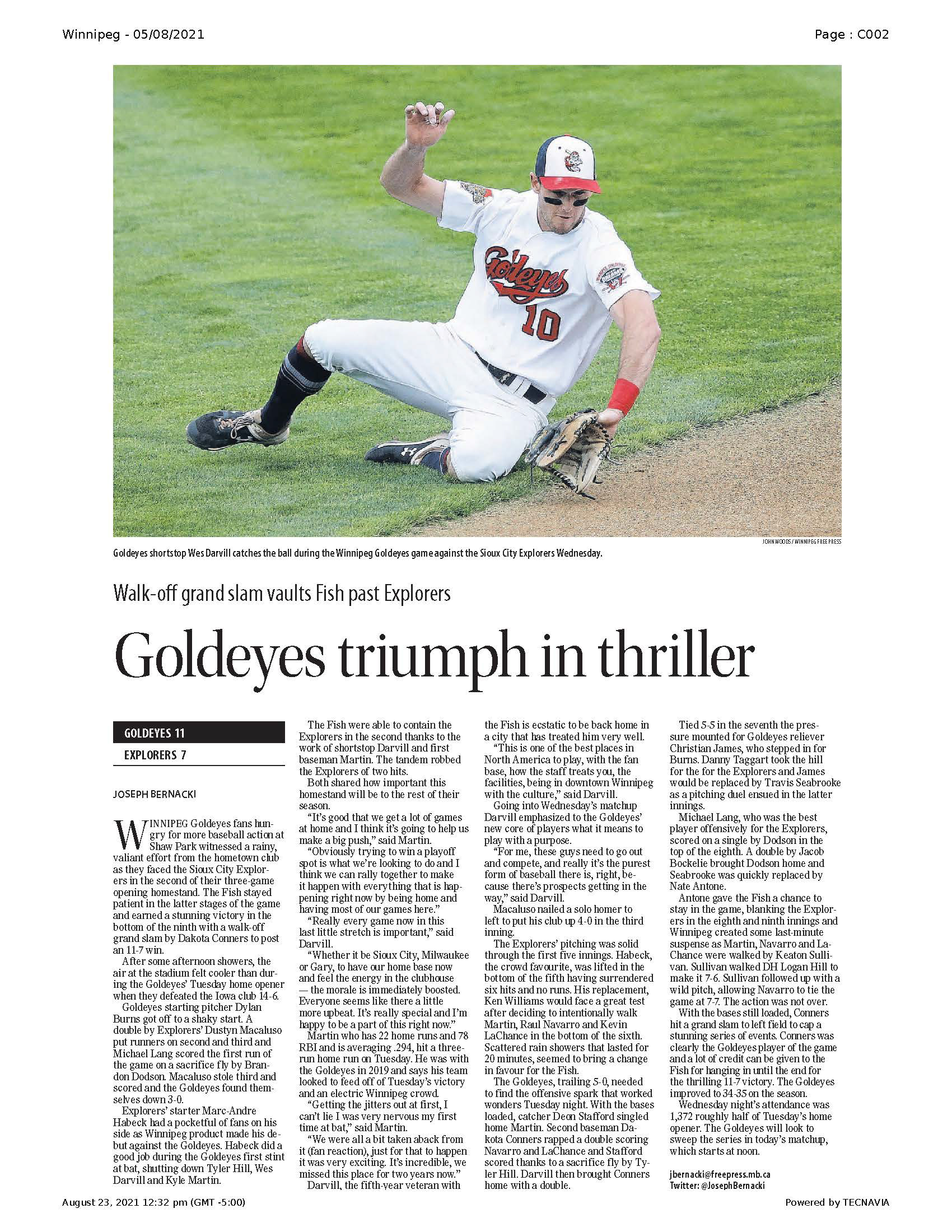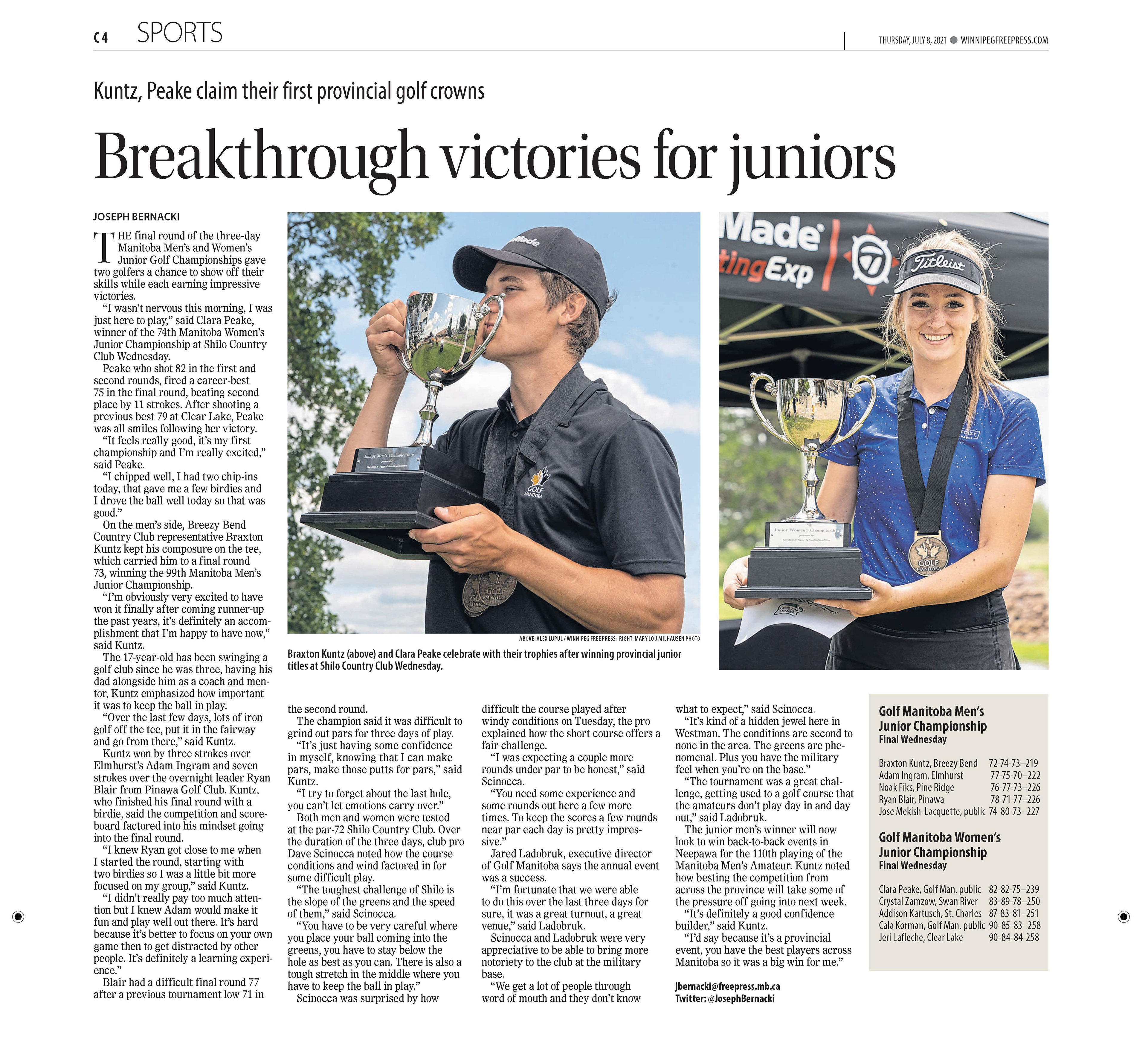 A collection of work published during my time as the 2021 Vince Leah Sports Intern at the Winnipeg Free Press from May 31, 2021 to August 26, 2021.